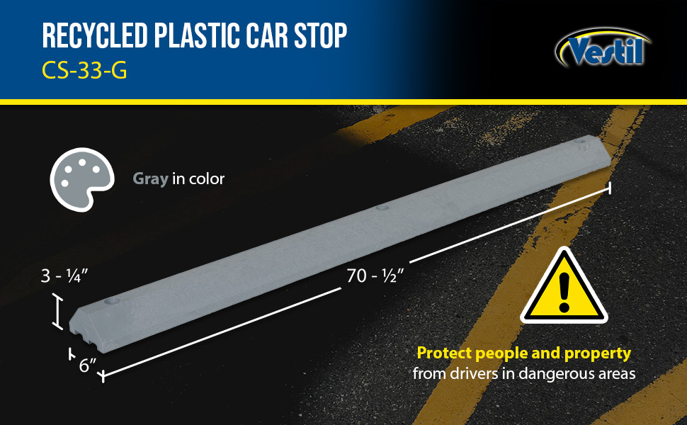 CS-33-G CS-33-GRecycled Plastic Car Stop 72 In. x 6 In. x 3-1/4 In. GrayMounting Holes (qty.): 3