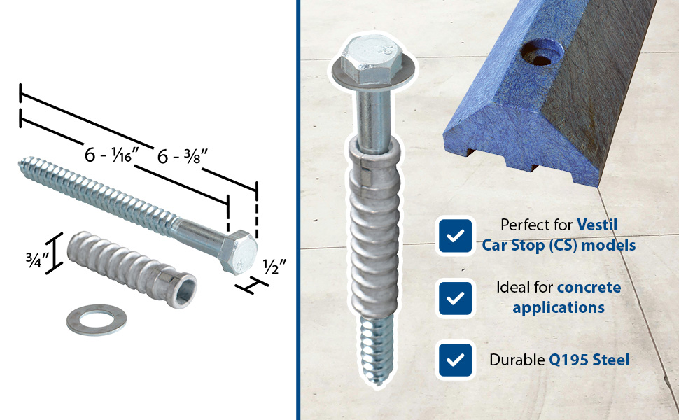 CS-33-KIT-4 CS-33-KIT-4Steel Q195 Concrete Car Stop Hardware Kit 4 Pack Silver2