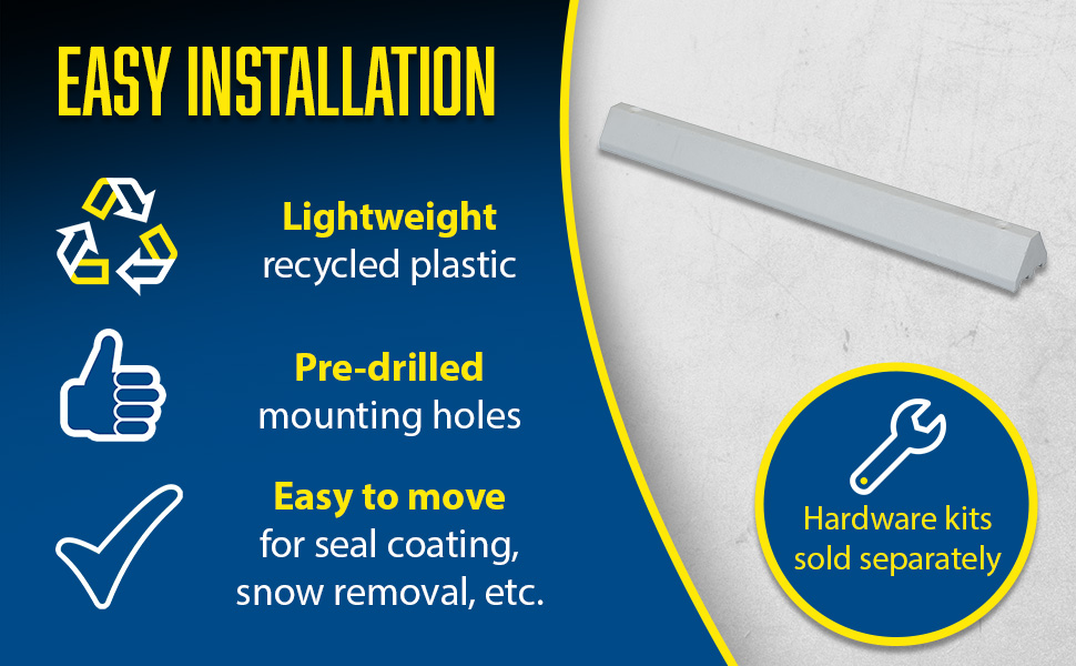 CS-S72-W CS-S72-WRecycled Plastic Car Stop 72 In. x 6 In. x 4 In. WhiteMounting Holes (qty.): 3