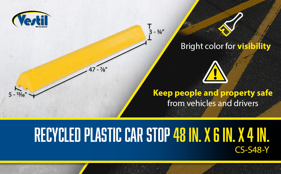 CS-S48-Y CS-S48-YRecycled Plastic Car Stop 48 In. x 6 In. x 4 In. YellowMounting Holes (qty.): 2