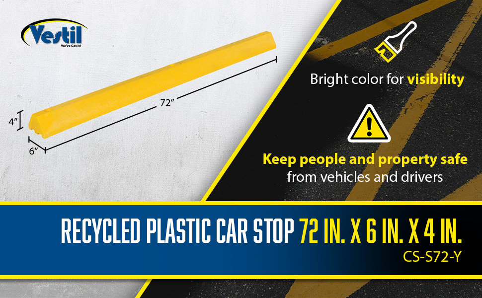 CS-S72-Y CS-S72-YRecycled Plastic Car Stop 72 In. x 6 In. x 4 In. YellowMounting Holes (qty.): 3