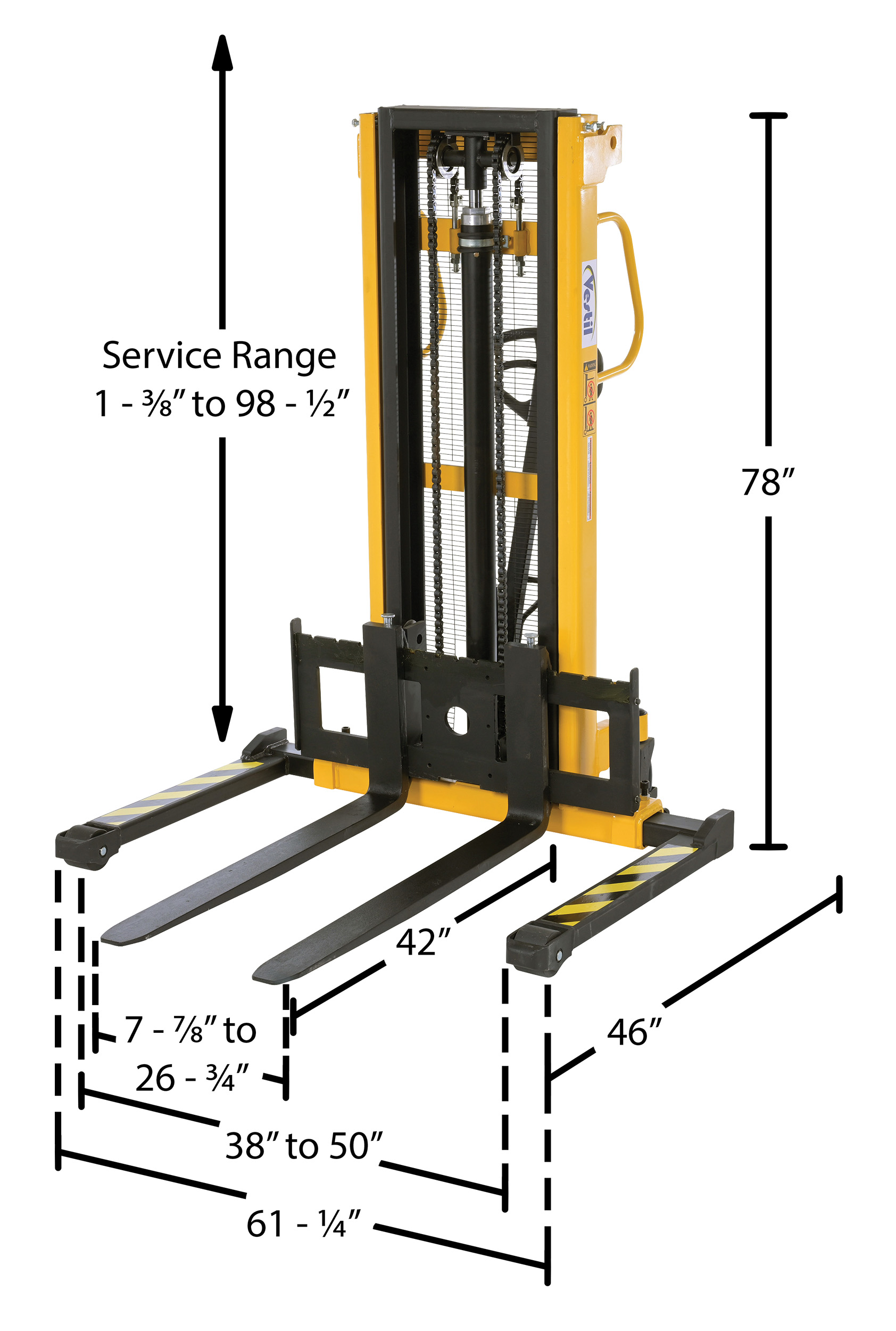 VHPS-550-AA-F72 VHPS-550-AA-F72Steel Manual Stacker Adjustable Forks/Legs 550 Lb. Capacity Black / YellowUniform Capacity (lb.): 550