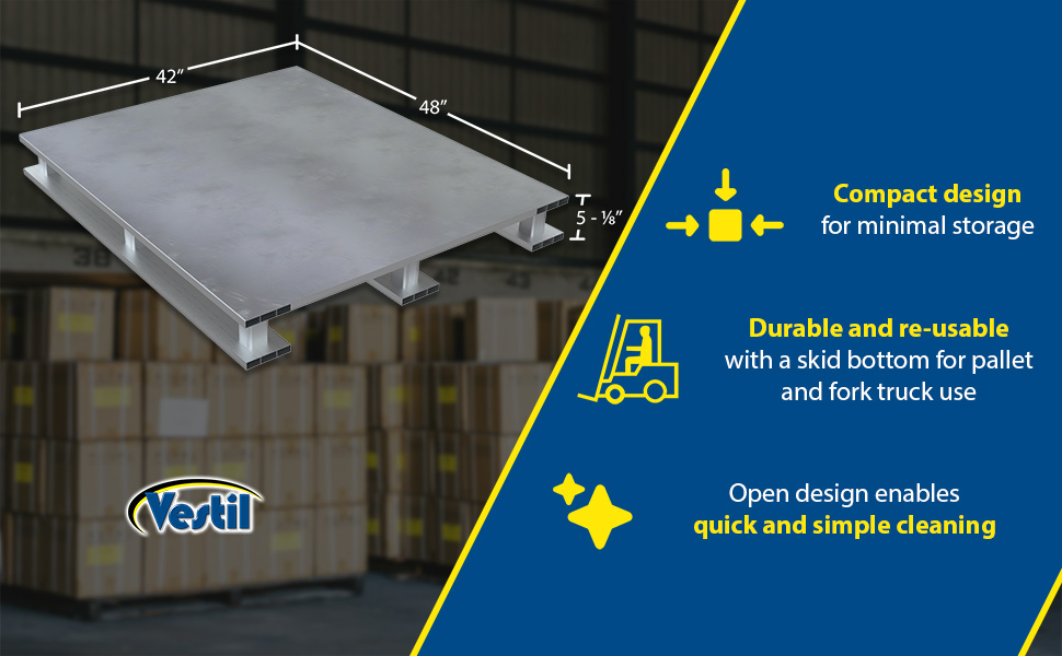 | Aluminum Solid Top with Skid Bottom 42 In. x 48 In. 6000 Lb. Capacity Silver | Static Capacity (lb.): 6,000 Dynamic Capacity (lb.): 4,000 | 115 |