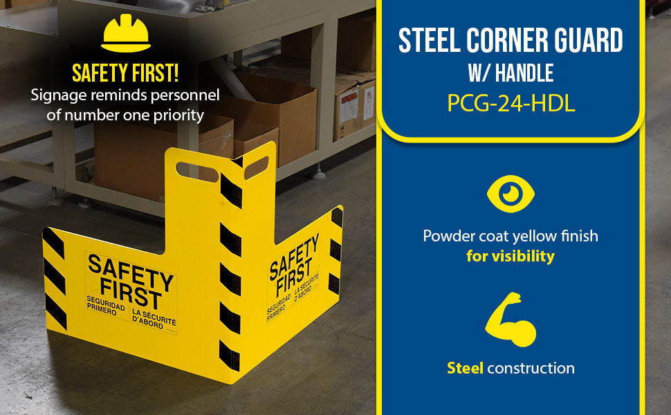 PCG-24-HDL PCG-24-HDLSteel Corner Guard with Handle 24 In. x 24 In. x 24 In. YellowPackage Contents: (1) Coner Guard with "Safety First" Print and Handle
