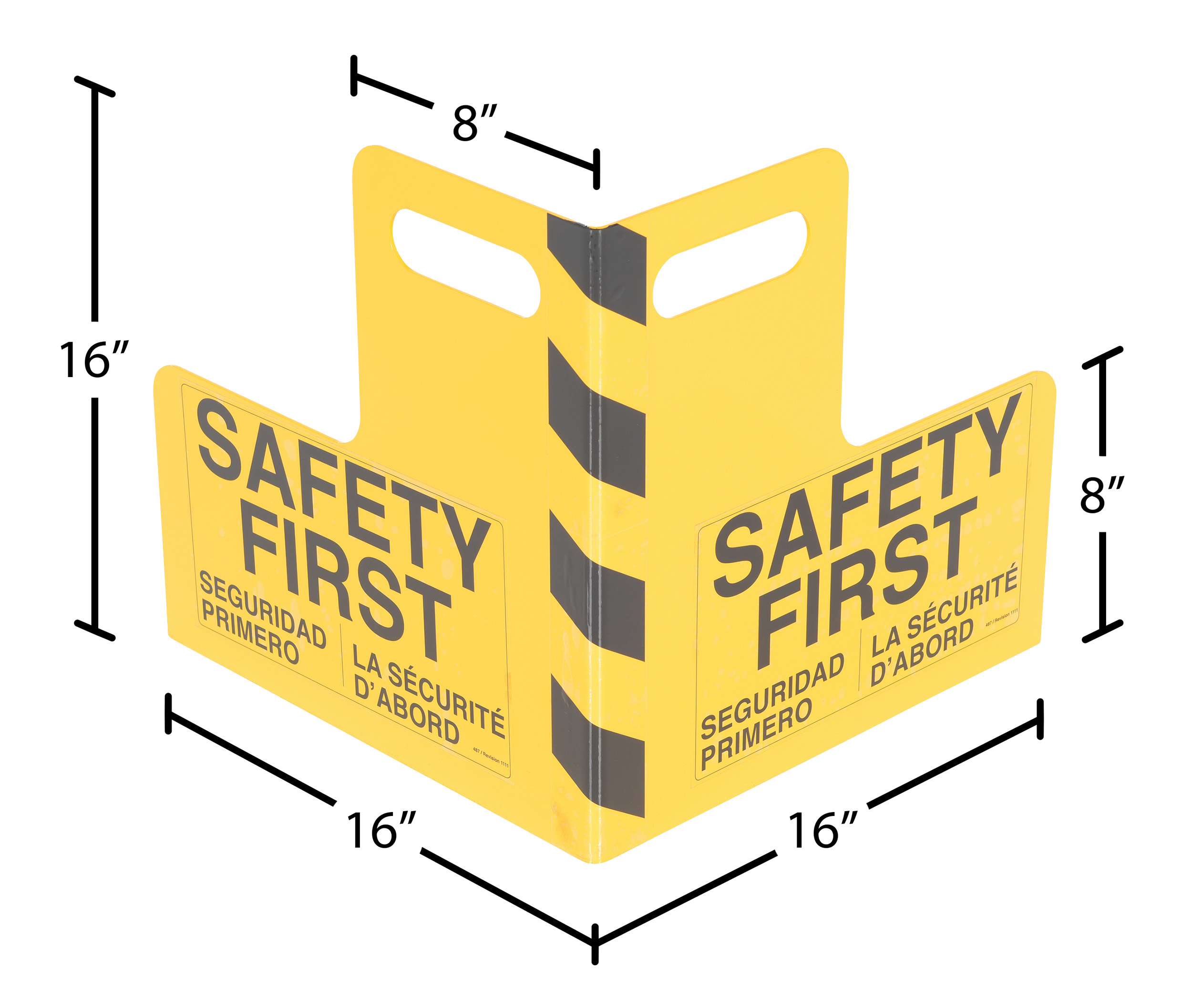 PCG-16-HDL PCG-16-HDLSteel Corner Guard with Handle 16 In. x 16 In. x 16 In. YellowPackage Contents: (1) Coner Guard with "Safety First" Print and Handle