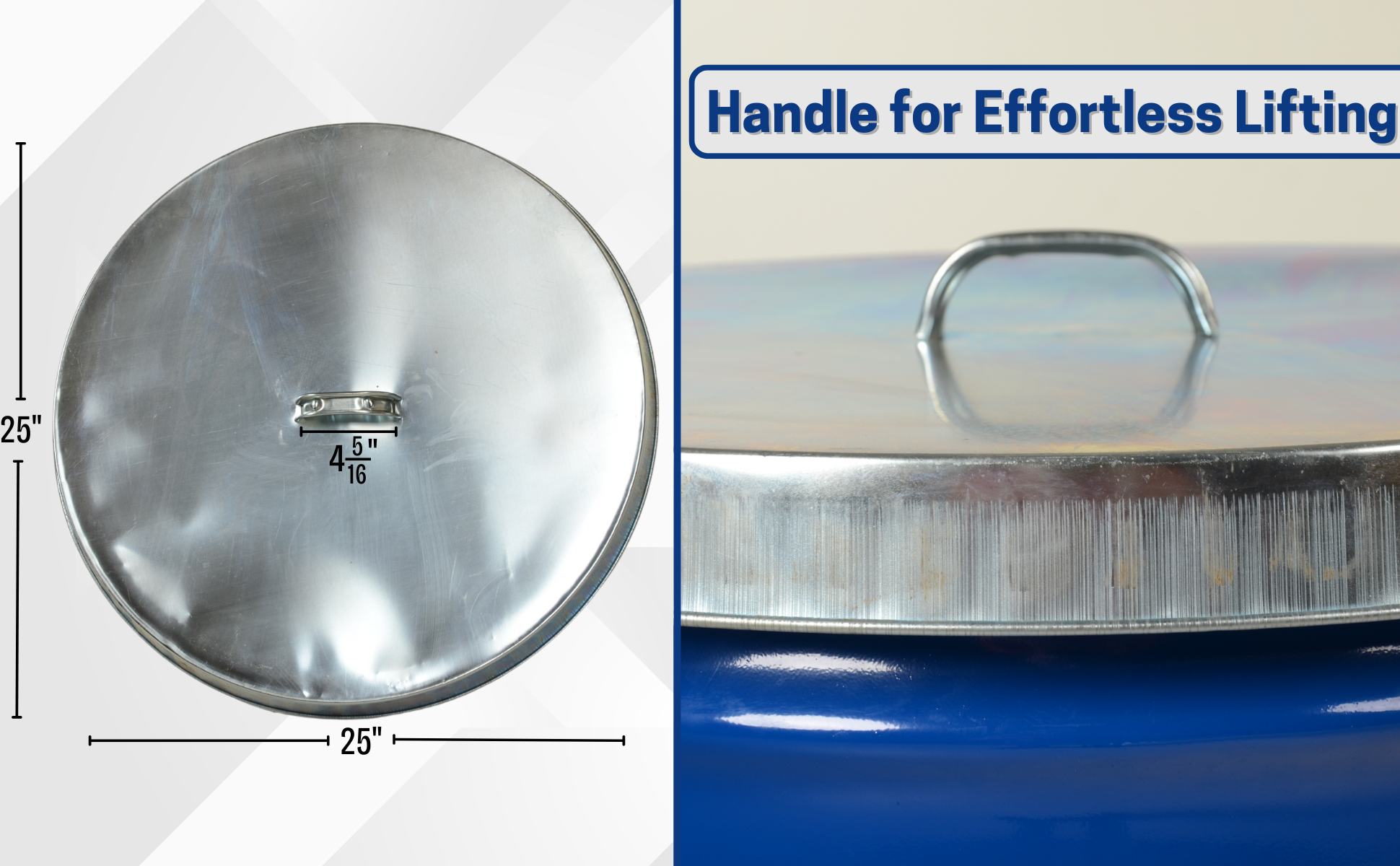 DC-245-H DC-245-HGalvanized Open Head Drum Cover with Handle 24-1/2 In. Inside Diameter SilverGalvanized Steel (gauge): 26