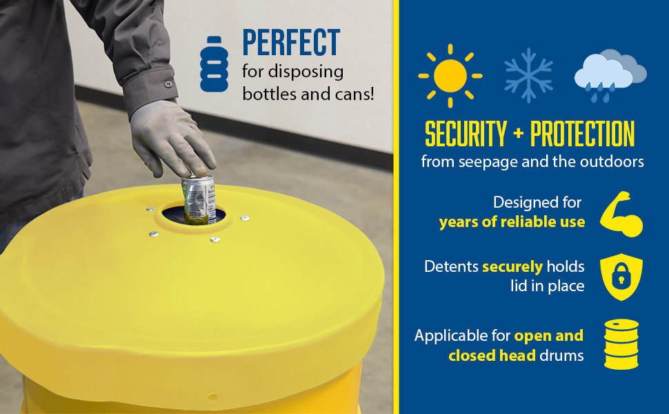 DC-P-55-CAN-YL DC-P-55-CAN-YLLow-Density Polyethylene Universal 55 Gallon Drum Recycling Lid YellowWorks With Steel Drum (gal.): 55
