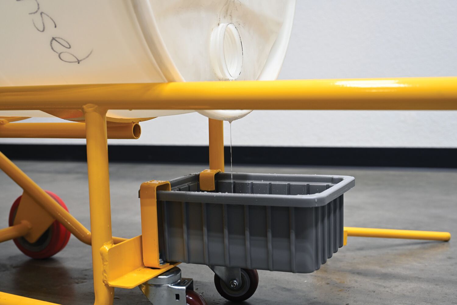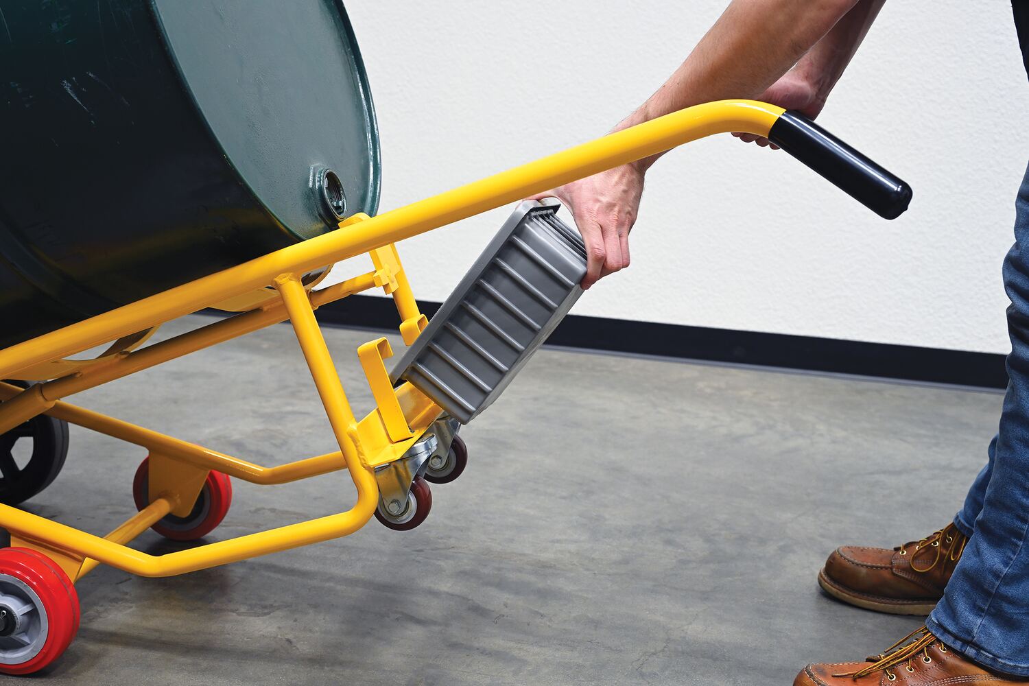 Optional drip pan with brackets for the multi-purpose drum truck/cradle.