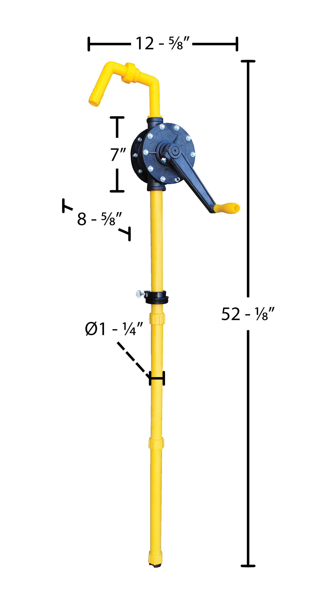 • Manual drum pump design dispenses and transfers liquids out of fifty-five gallon drums