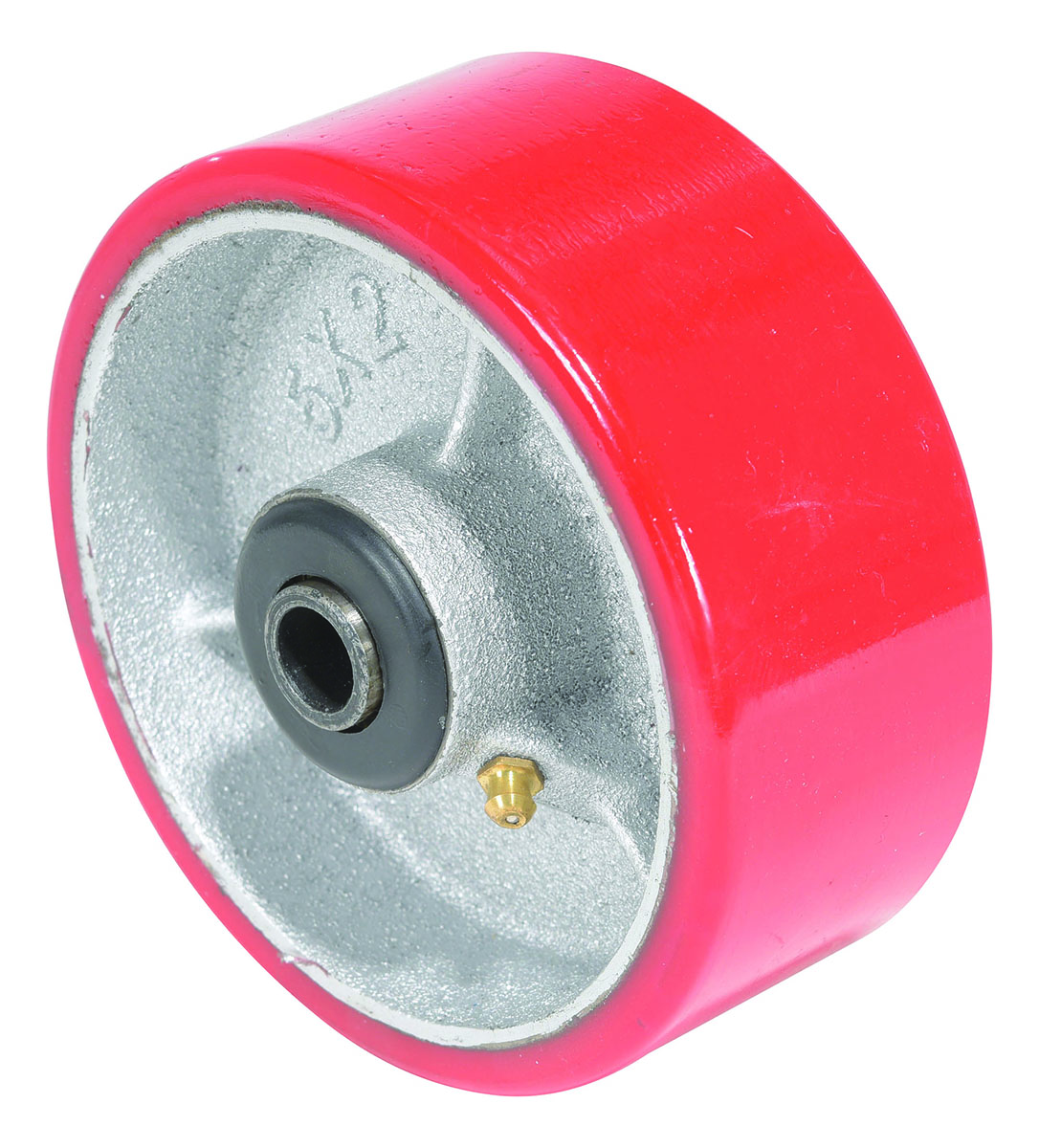 Polyurethane Wheel 5 In. Diameter x 2 In. Width Red/Silver/Black 551 Lb. CapacityPolyurethane wheels are the perfect asset for an assortment of commercial and non-commercial settings. The large capacity diminishes the number of trips needed to be taken while reducing the amount of physical labor needed to transport products. The polyurethane construction lessens the amount of noise caused through travel across rough surfaces. These casters are resistant to a variety of chemicals. Maroon tread color. Core is constructed of polyolefin.