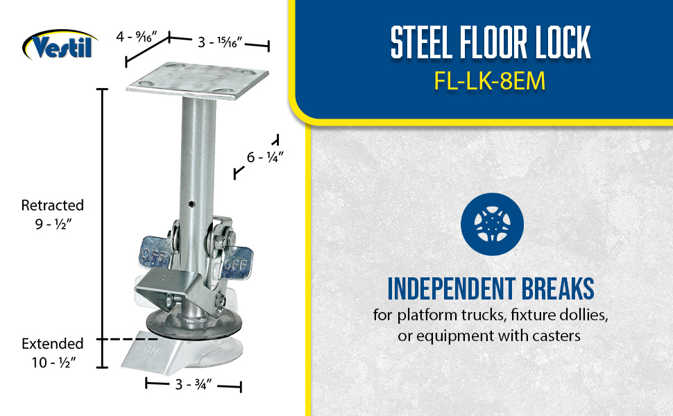 | Steel Top Mount Floor Lock 4-7/8 to 5-5/8 In. Height Silver 1,200 Lb. Capacity | Caster Diameter (in.): 4 Mount Height (in.): 5-5/8 | 4 |