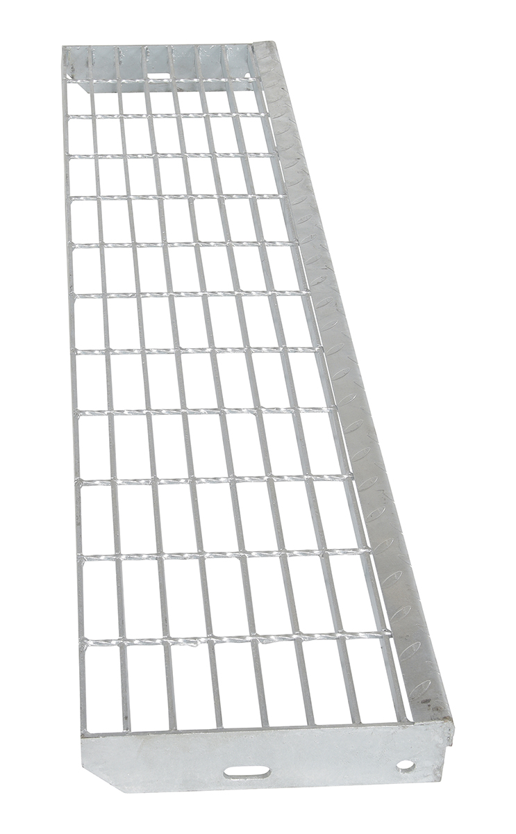 A galvanized steel step provides both stability and strength in a variety of areas around the workplace. The steel construction is robust and strong to handle consistent daily use, while the large capacity lets the user to traverse the unit with loads both heavy and light. The surface design is grated in an effort to minimize slippage. Unit has pre drilled mounting holes for simple installation and immediate use.