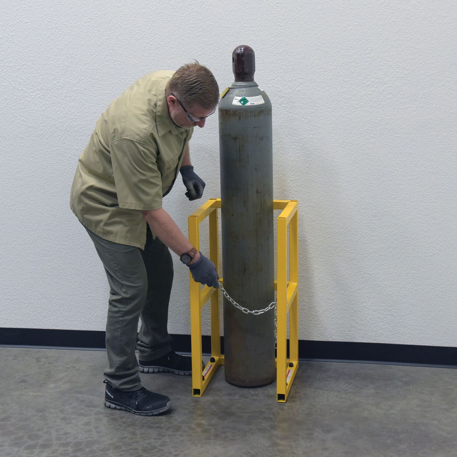 CYL-FMSR-1 CYL-FMSR-1Steel Cylinder Barricade Rack 16-1/2 In. x 16-1/2 In. x 32 In. 1 Cylinder Capacity YellowUsable Width (in.): 13-1/2