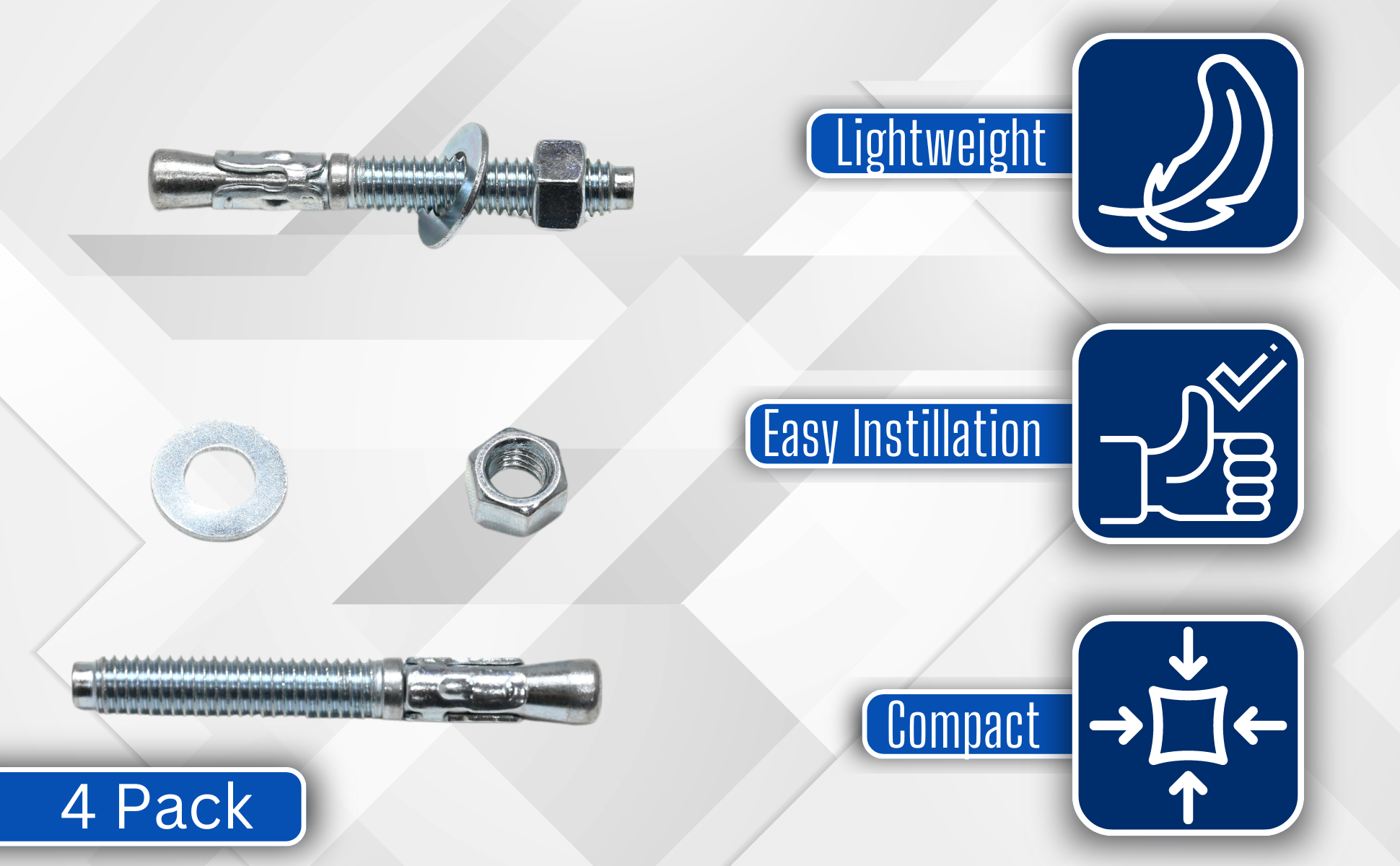 AS-124-4PK AS-124-4PKSteel Concrete Sleeve Anchor Bolts 4 Pack 1/2 In. x 4 In. SilverPack (qty.): 4