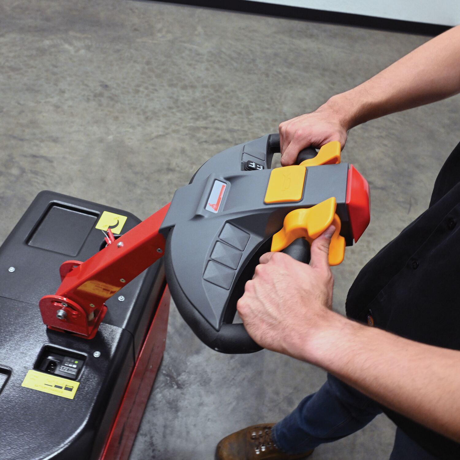 The tiller head with ergonomic shape is equipped with a speed selector for maneuvers with vertical rudder and proportional speed of descent control forks
