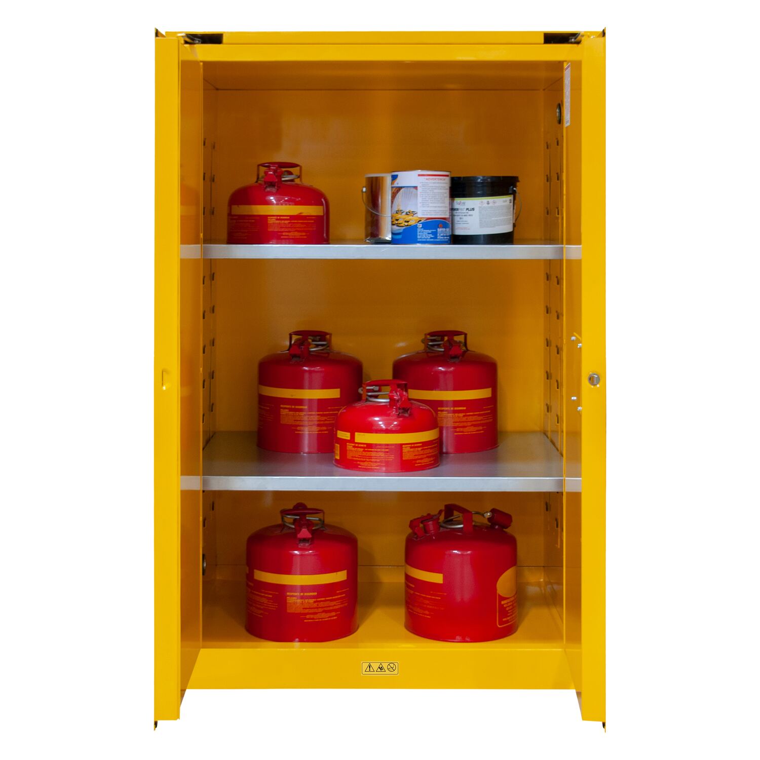 Safe Storage For Your Flammable Items! Keeping dangerous items safe is always a priority. Built to help with that safety is the flammable storage cabinet. A fully welded, double wall steel construction has the durability and strength that many standard cabinets just don't have. One of the best examples of the tremendous care that goes into each and every cabinet is the grounding aid. Each cabinet is equipped with an electrical ground to eliminate any electrostatic discharge. Another often over looked feature is the two inch leak proof base. This base neatly corrals any material or substances that may have escaped their original containers. Each cabinet comes assembled and prepared to keep you and your workplace safe!