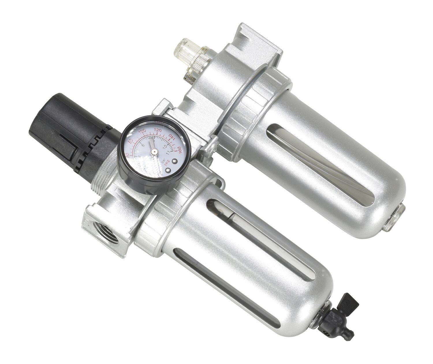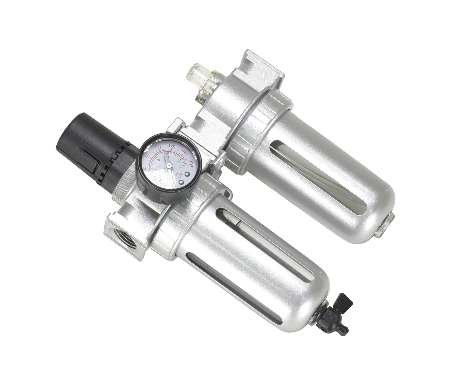 FLR-1/2 FLR-1/2Air Filter/Lubricator/Regulator Port Hole 1/2 In. For Rotary Air/Oil Powered Units SilverNPT Port Size (in): 1/2