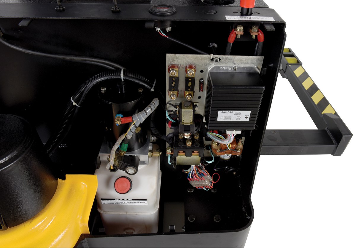 Proprietary safety-enhancing emergency reverse function When actuated, the emergency reverse belly switch instantly reverses direction and moves the unit forward (away from the operator) until the switch is released or after five seconds have elapsed. The built-in safety circuit will automatically disable the entire unit if the emergency reverse belly switch is activated for more than 5 seconds after which the unit must be reset to return to normal operating conditions. This state-of-the-art safety device provides a high degree of operator protection.