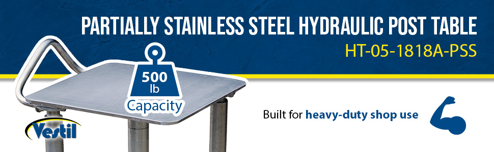 HT-05-1818A-PSS HT-05-1818A-PSSPartially Stainless Steel Hydraulic Post Table 18 In. x 18 In. 500 Lb. Capacity SilverUniform Capacity (lb.): 500