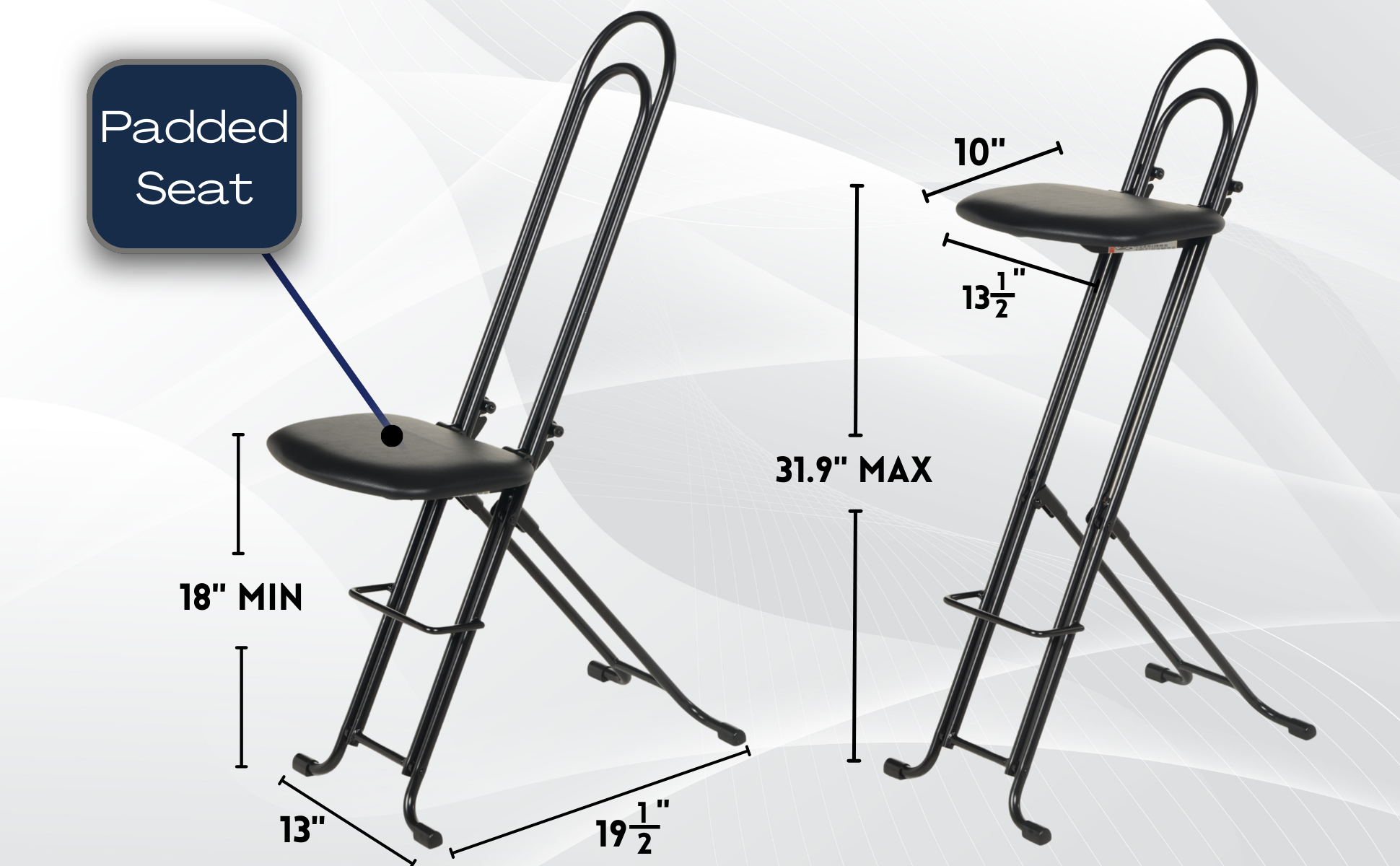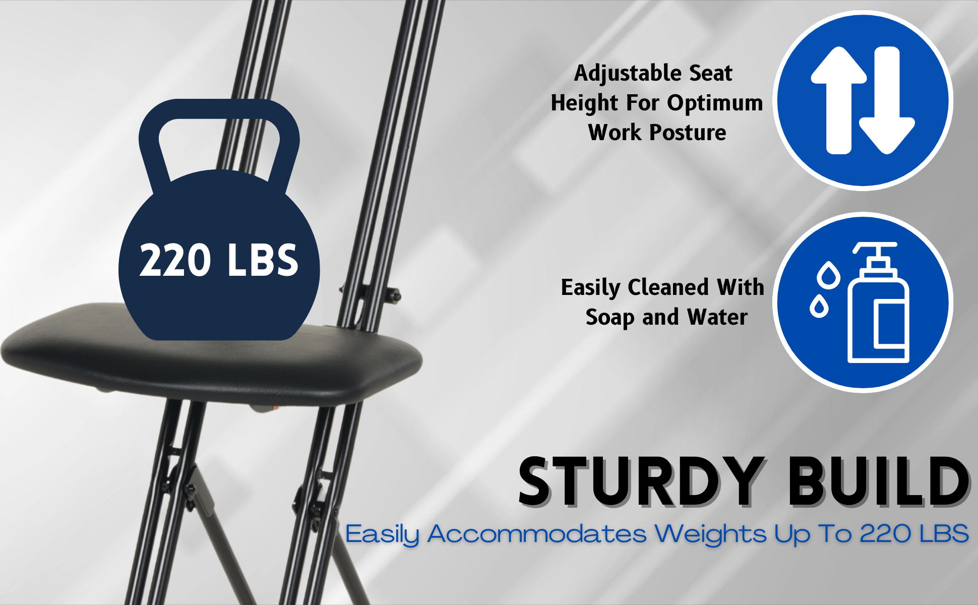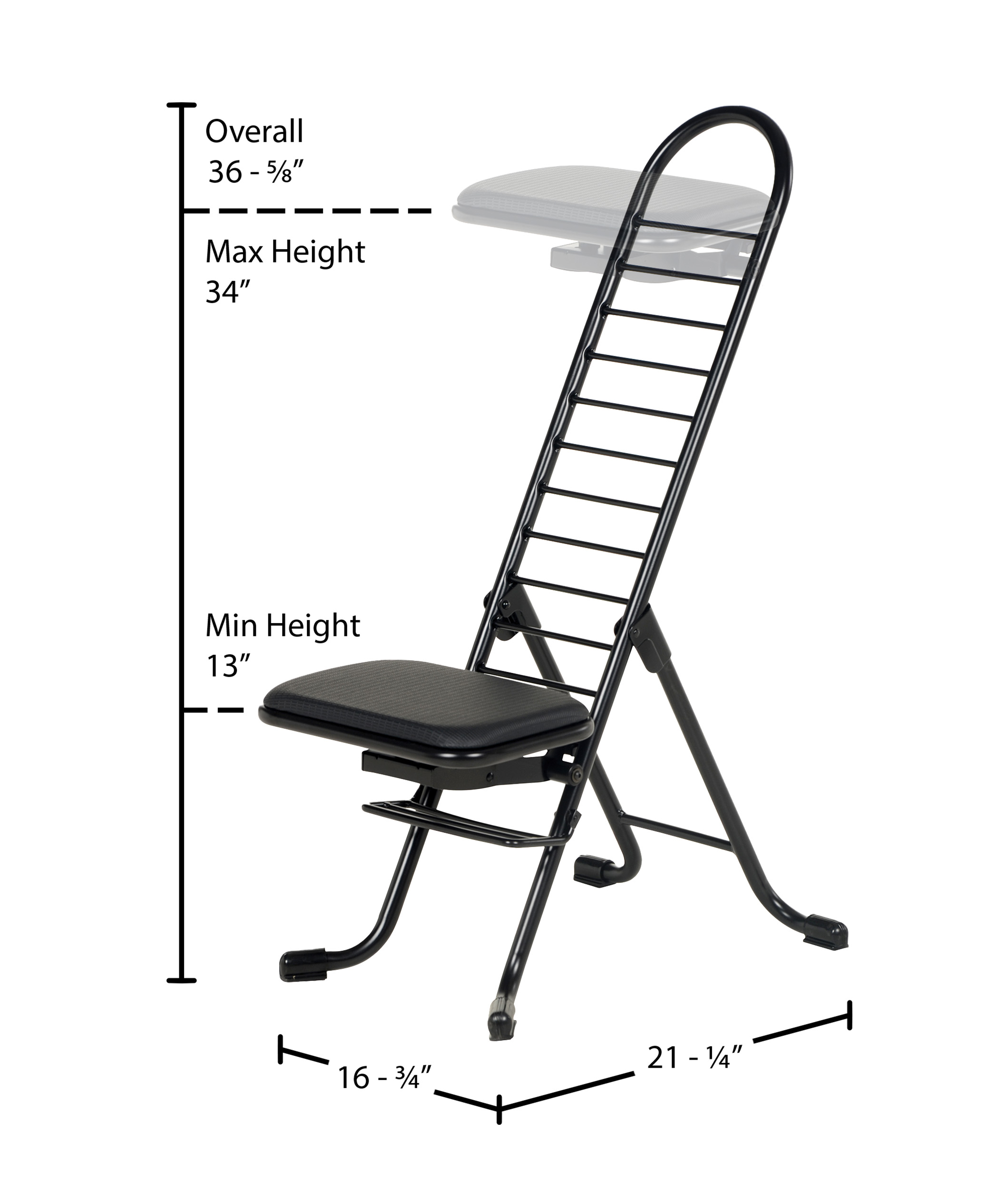 The CPRO-800LP model is not only convenient but easy to use. Simply unfold the rear legs and slide the contoured padded seat to the desired ergonomic height using the infinite adjustment for optimum work posture. Folds up to a 4" profile for easy portability and storage.