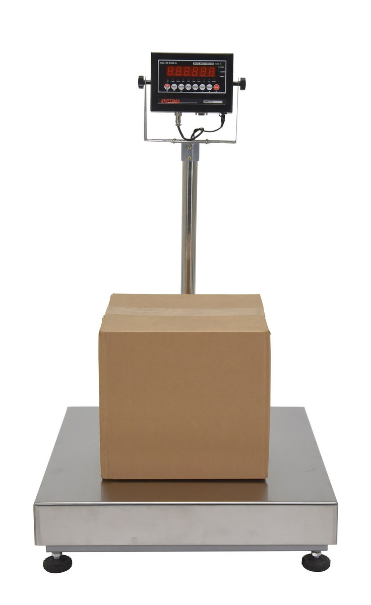 Designed for speed, accuracy, and high usage. Ideal for busy shipping docks, outdoor markets, and food processing. Mild steel platform, interlocking 304 stainless steel tray for easy cleaning. Adjustable tilt display for convenient viewing angles. Rechargeable battery and AC adapter. Aluminum environmentally sealed single point load cell. Adjustable feet provides exceptional traction. Removable column for indicator to work up to 4ft from the base. International protection IP65. Weight and count. Connection Port RS-232. LCD display (lbs, kgs, ounces, and grams).