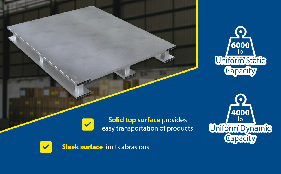 AP-ST-4824 AP-ST-4824Aluminum Heavy Duty Solid Top Half Pallet 24 In. x 48-1/8 In. x 6 In. 4000 Lb. Capacity SilverUniform Capacity (lb.): 4,000