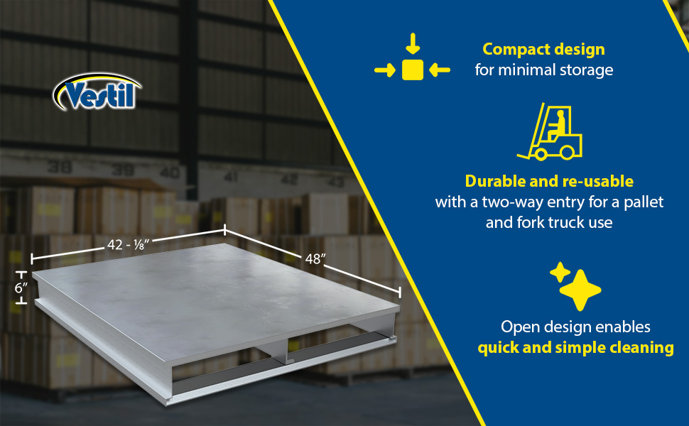 AP-ST-4248 AP-ST-4248Aluminum Heavy Duty Solid Top Pallet 48 In. x 42-1/8 In. x 6 In. 6000 Lb. Capacity SilverStatic Capacity (lb.): 6,000