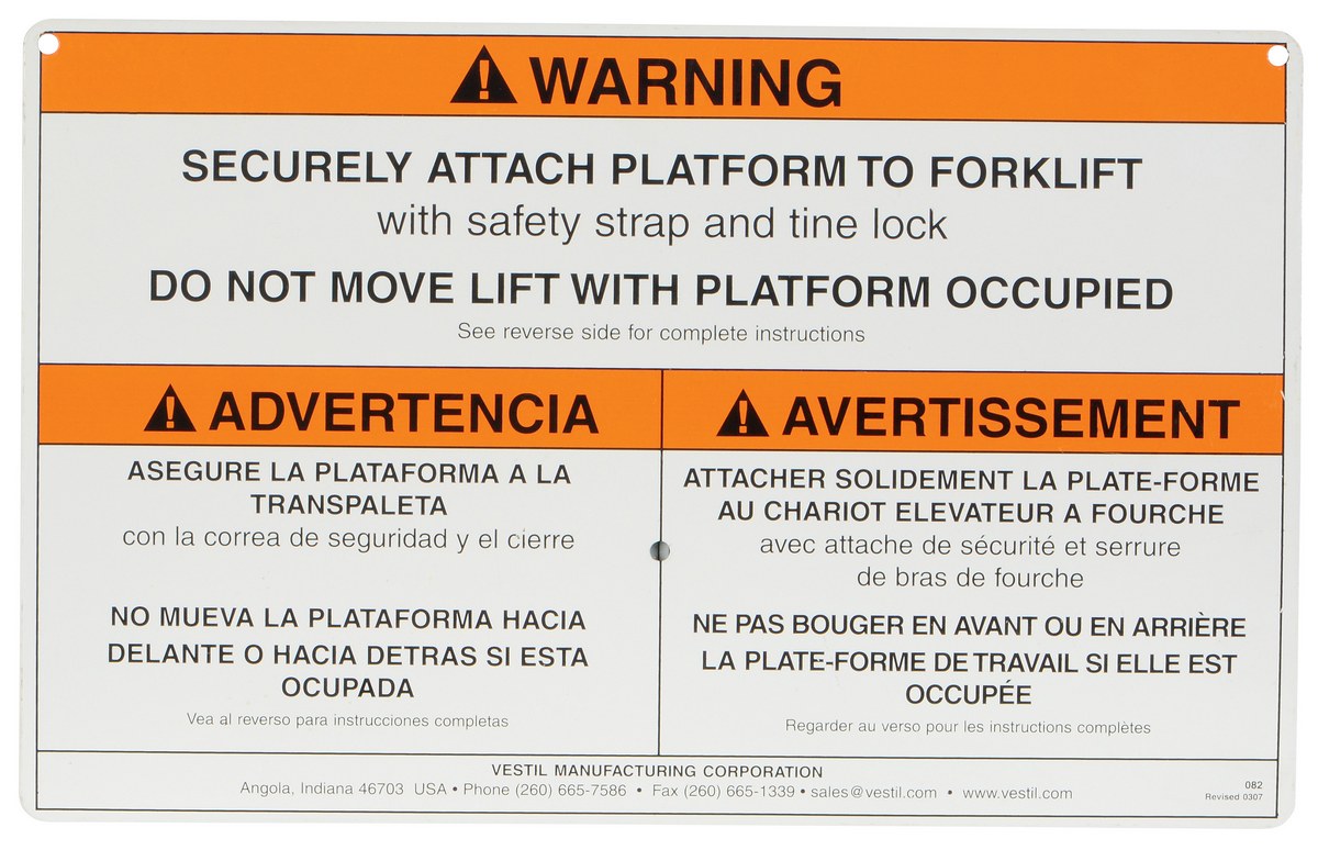 WP-WS WP-WS Aluminum Warning Sign With Hardware For Work Platforms White 30 Days Limited Warranty 3