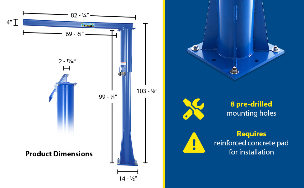 JIB-FM-3 JIB-FM-3Steel Floor Mounted Jib 80 In. I-Beam 300 Lb. Capacity BlueUniform Capacity (lb.): 300