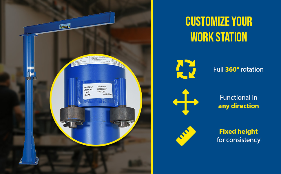 JIB-FM-10 JIB-FM-10Steel Floor Mounted Jib 80 In. I-Beam 1000 Lb. Capacity BlueUniform Capacity (lb.): 1,000