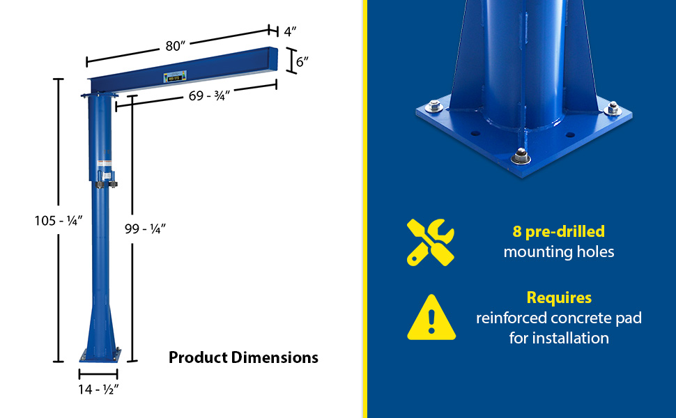 JIB-FM-6 JIB-FM-6Steel Floor Mounted Jib 80 In. I-Beam 600 Lb. Capacity BlueUniform Capacity (lb.): 600