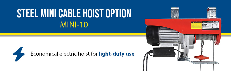 MINI-10 MINI-10Steel Mini Cable Hoist Option 19-1/4 In. x 8 In. x 11-3/4 In. 1000 Lb. Capacity RedSingle-Line Uniform Capacity (lb.): 1,000