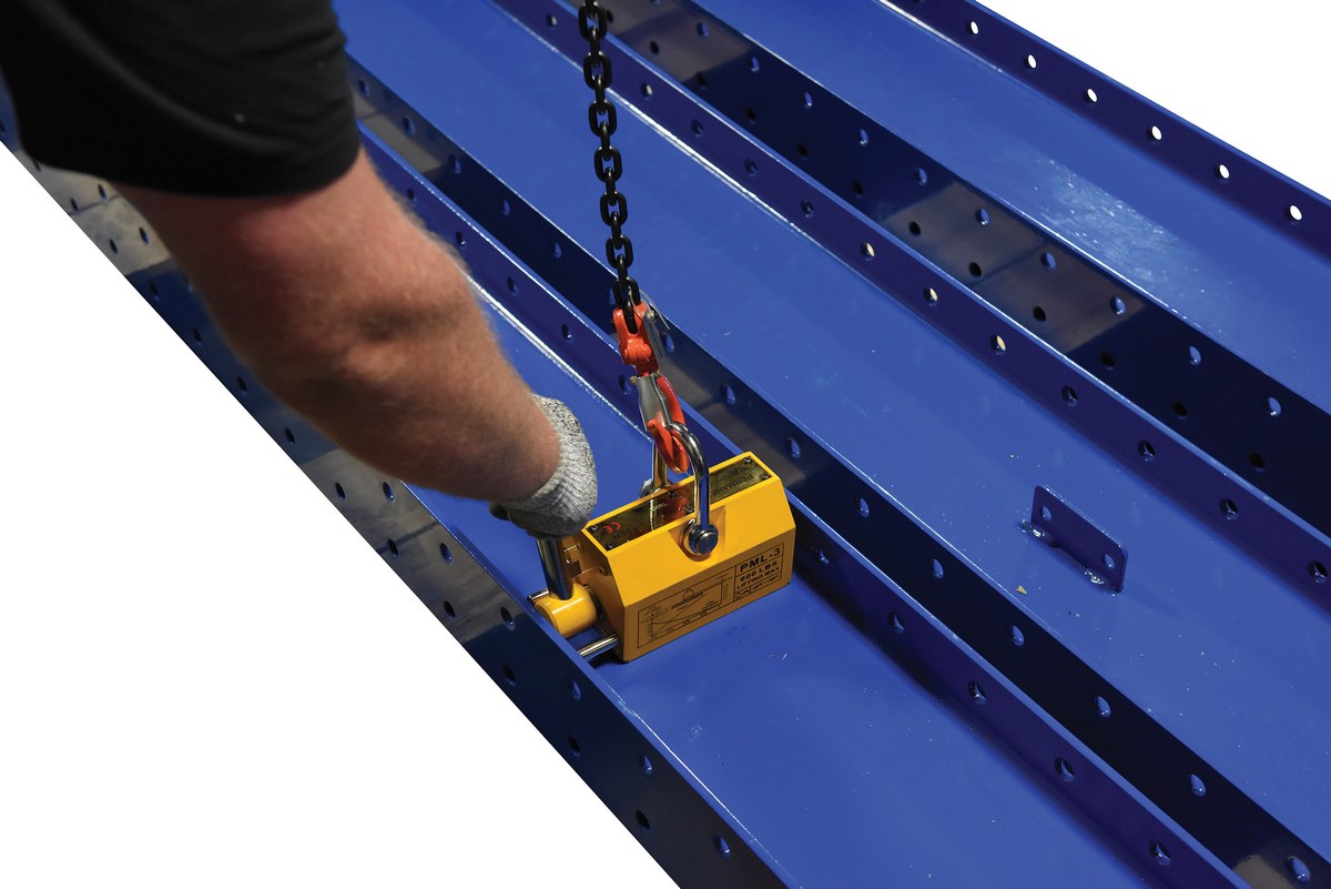 ML-6Pick up sheets of material by use of overhead crane or chain with the permanent Magnetic Lifter. Magnet is activated or deactivated by simply rotating the lever. Units are lightweight, so transporting from work area to work area is convenient.