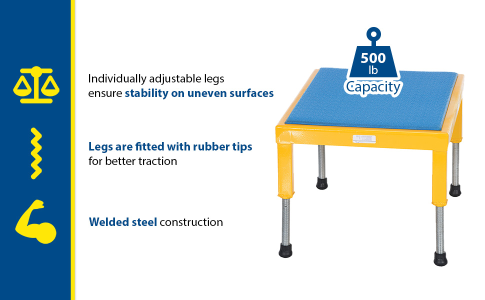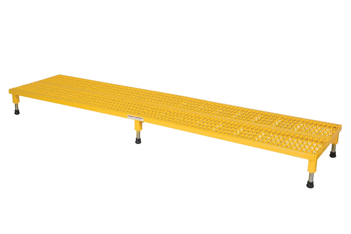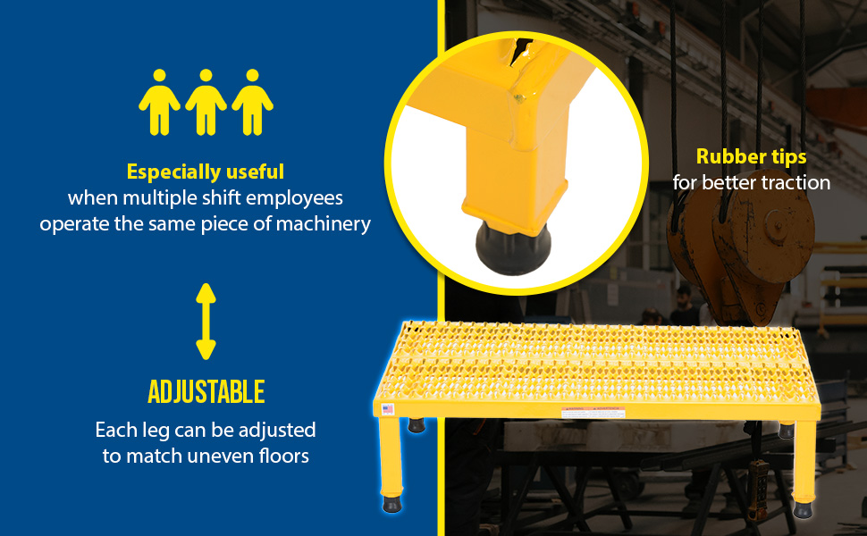 Often times work areas can be ergonomically unfriendly places. Those conditions can be even further exaggerated when different shift employees work on the same equipment. But, with an adjustable work-mate stand it's easy to elevate workers to new heights! If floors or surfaces are uneven, don't worry, each leg is adaptable and can be lowered or raised to best fit the circumstance. Whether you are looking for a single person design or a model that can accommodate multiple users, we've got it! All sizes have four (4) legs except the 60", 72", and 96" long models which have six legs.