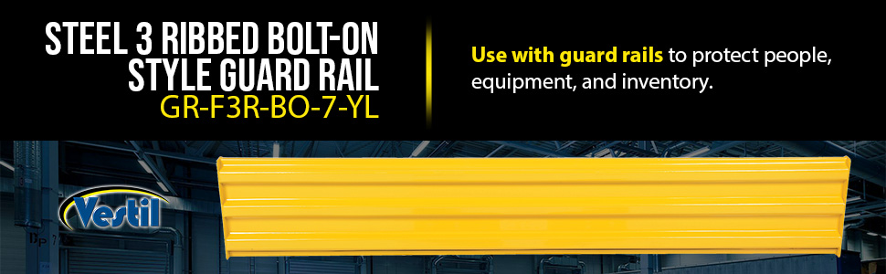 GR-F3R-BO-8-YL GR-F3R-BO-8-YLSteel 3 Ribbed Bolt On Style Guard Rail 89.875 In. Length YellowImpact Capacity (Lbs.): 10,000