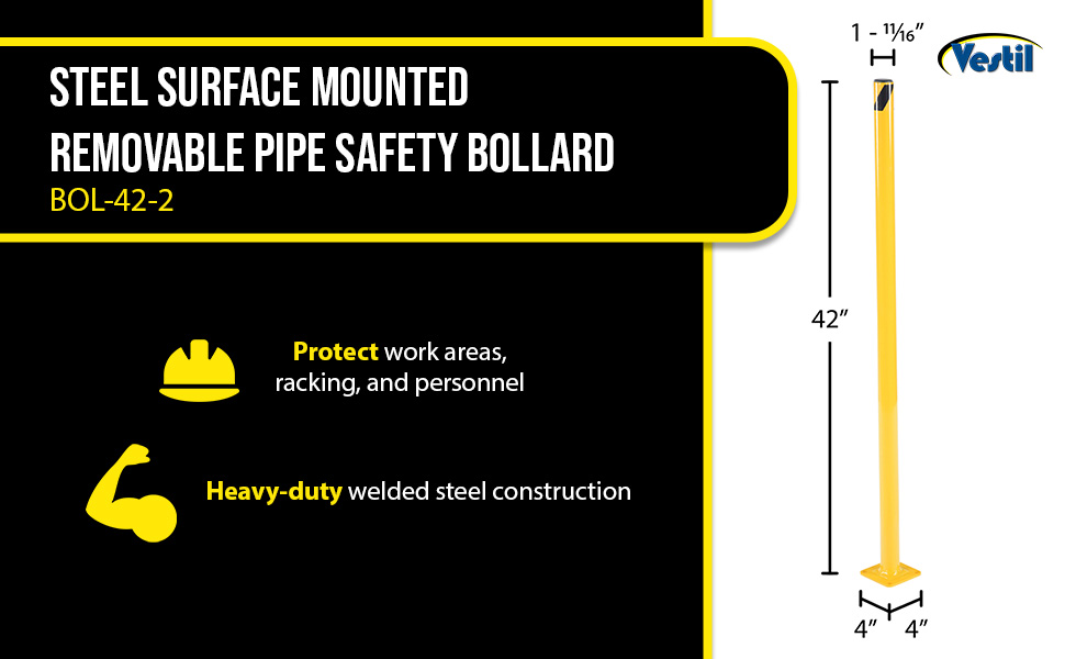 BOL-42-2 BOL-42-2Steel Pipe Safety Bollard 42 In. x 1-3/4 In. YellowAnchor Bolt: AS-383