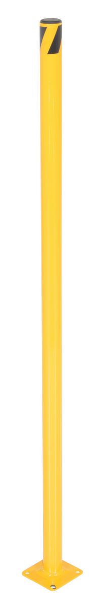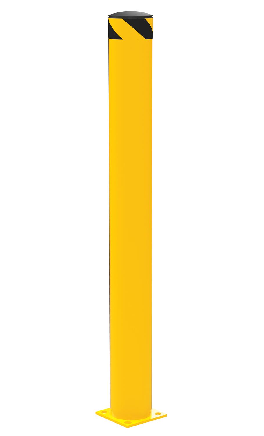 Bollards can be used both indoors and outdoors to protect work areas, racking and personnel. Caps are made of plastic and are removable when necessary. Bollards may be filled with concrete. Base plate includes four (4) pre-drilled mounting holes. Mounting kits and replacement caps available. Baked in powder coat or hot dipped galvanized finish for added toughness.