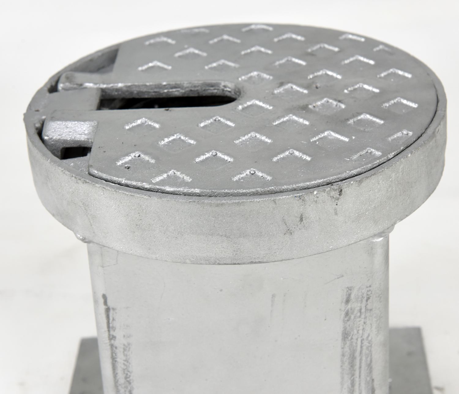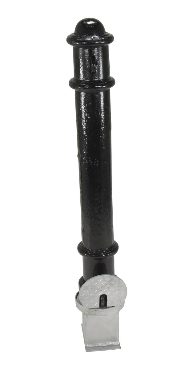 BOL-OR-40-BK, locks into a galvanized steel socket that is cemented into the ground. When the bollard is removed, a cover plate protects the hole leaving no protrusion above the surface. Galvanized base is included with the bollard.