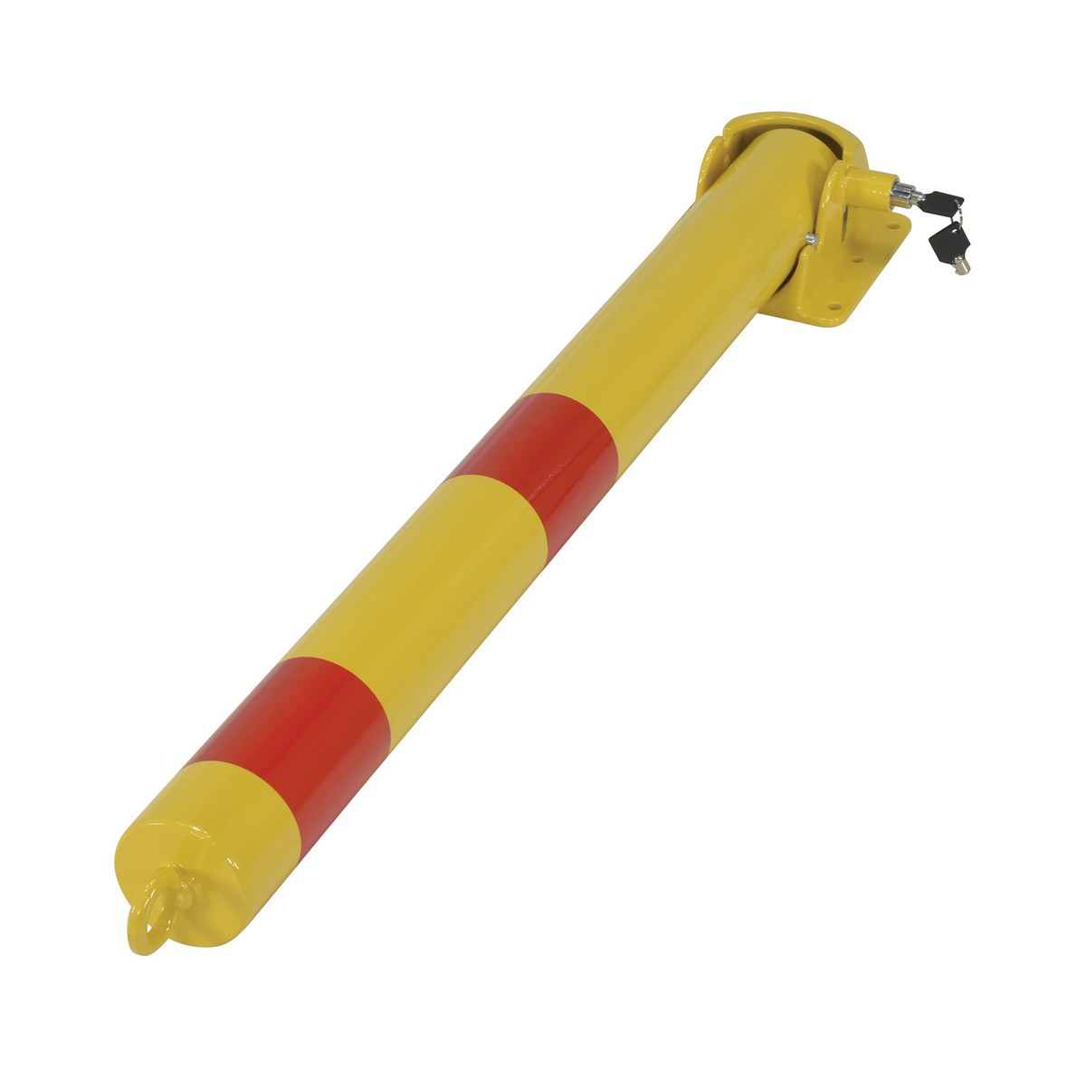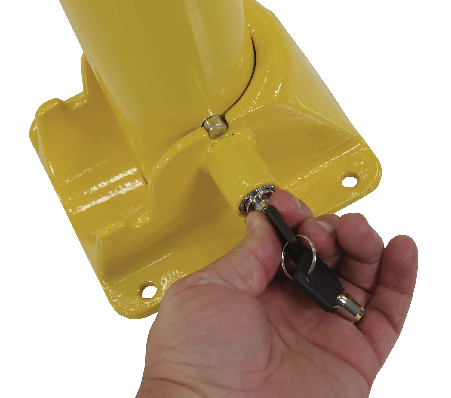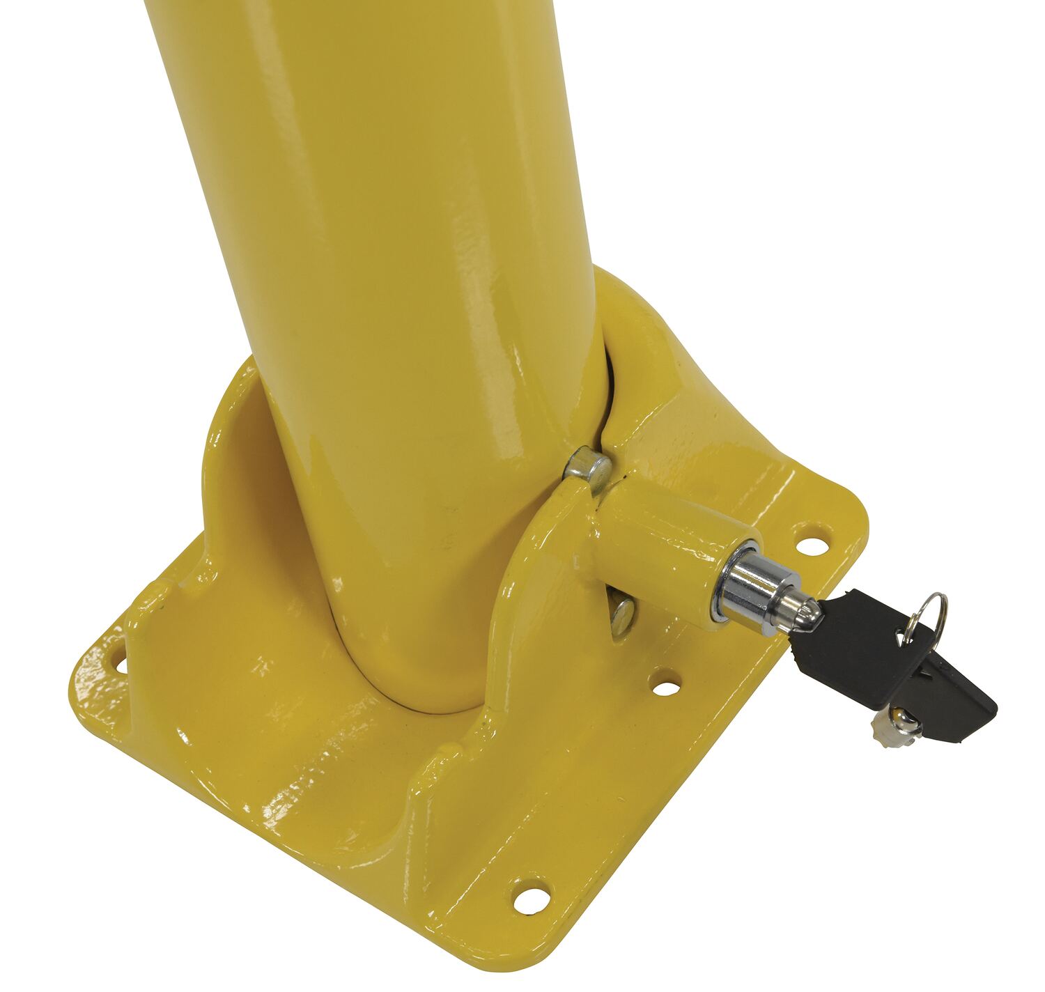 Ideal for vehicle access control. These heavy duty bollards feature integrated locking and an easy to operate cam-lock. Unit secures in open position via internal lock. Two (2) keys included. Four (4) 3/8" x 3" concrete anchors included for securing bollard to concrete.