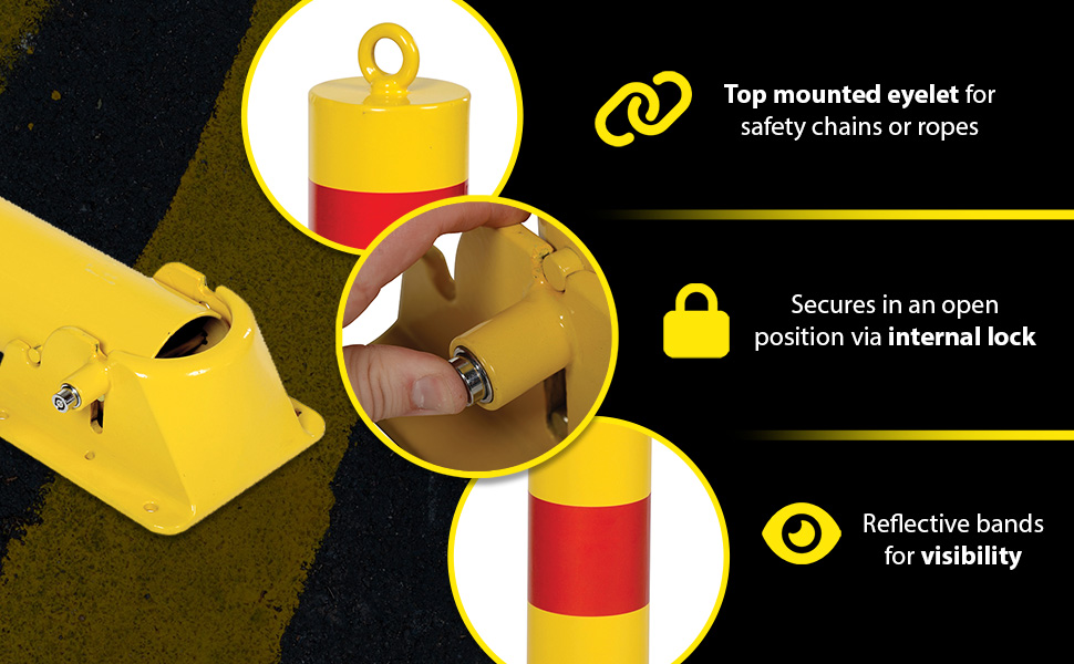 • Fold-down bollards are ideal for industrial and distribution facilities