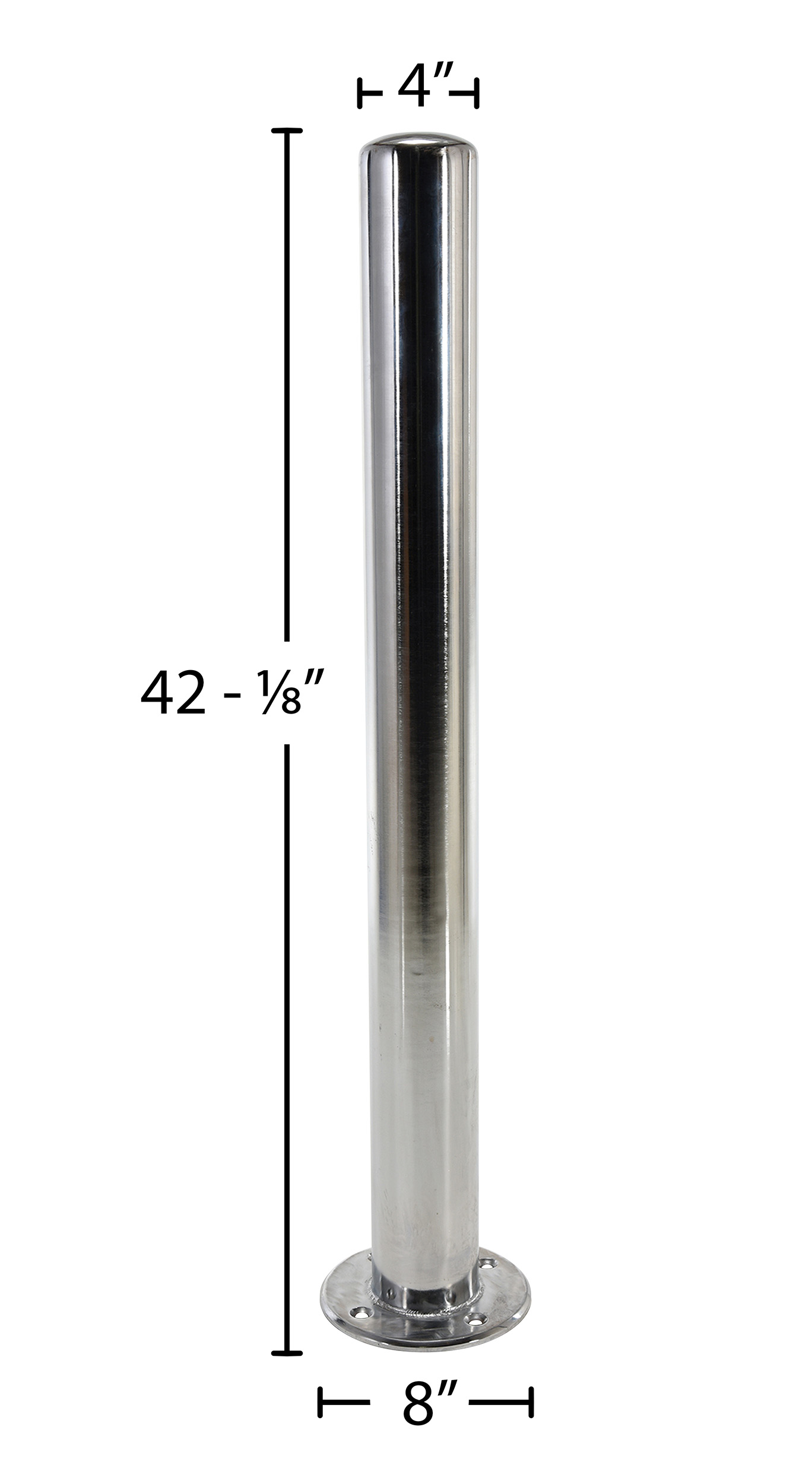 Improve the image of your facility while protecting people and equipment with this heavy-duty Chrome Bollard. Unit is made of steel and finished with an attractive bright chrome plating for a clean fresh look. Mounting hole diameter. is 1/2" x 4 holes Mounting plate outer diameter is 8" Mounting plate thickness is 3/8". Recommended for indoor use.