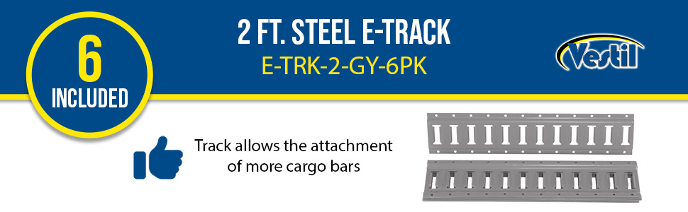 E-TRK-2-GY-6PK E-TRK-2-GY-6PK Steel E-Track 2 Ft. Length 6 Pack Gray 90 Days Limited Warranty 18