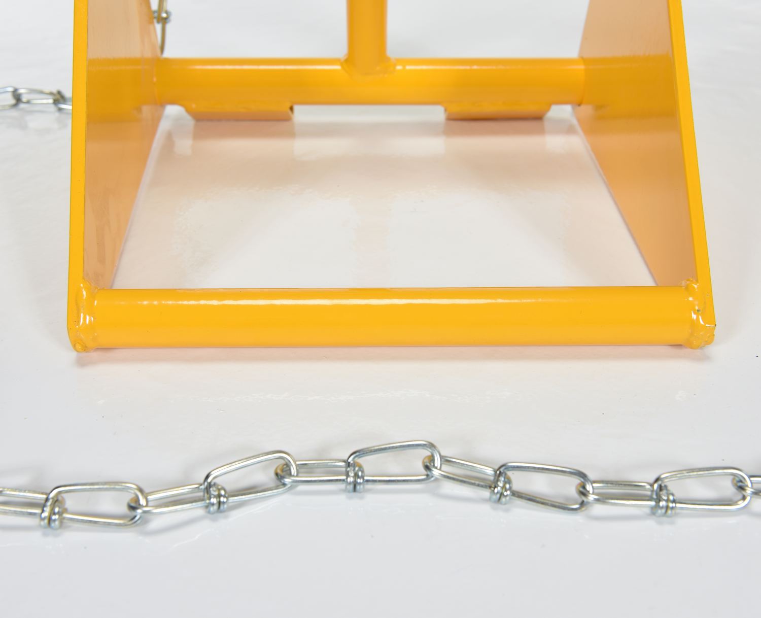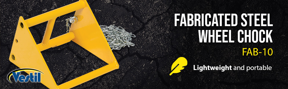 • FAB-10: The formed steel wheel chock is perfect for on the go or at the shop. The minimal weight of the chock lends itself to simple transference and maneuverability. Open face radius allows chock to be used with any size tire. Includes 10 ft. chain.