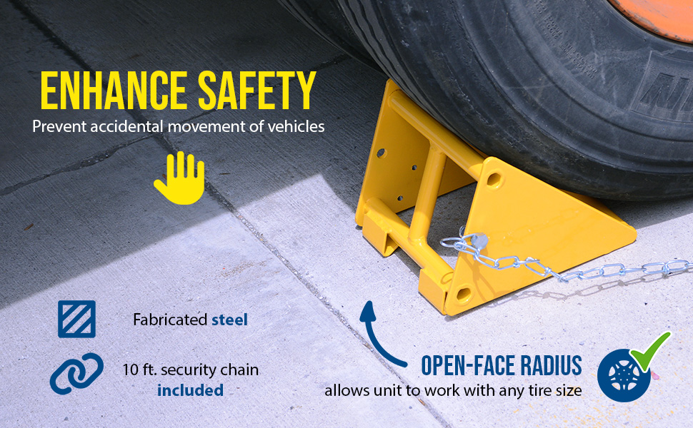 • FAB-8: The Steel Wheel Chock features a grip slot for easy pick up and positioning. Textured tread plate to provide maximum traction. Bright color for clear visibility.