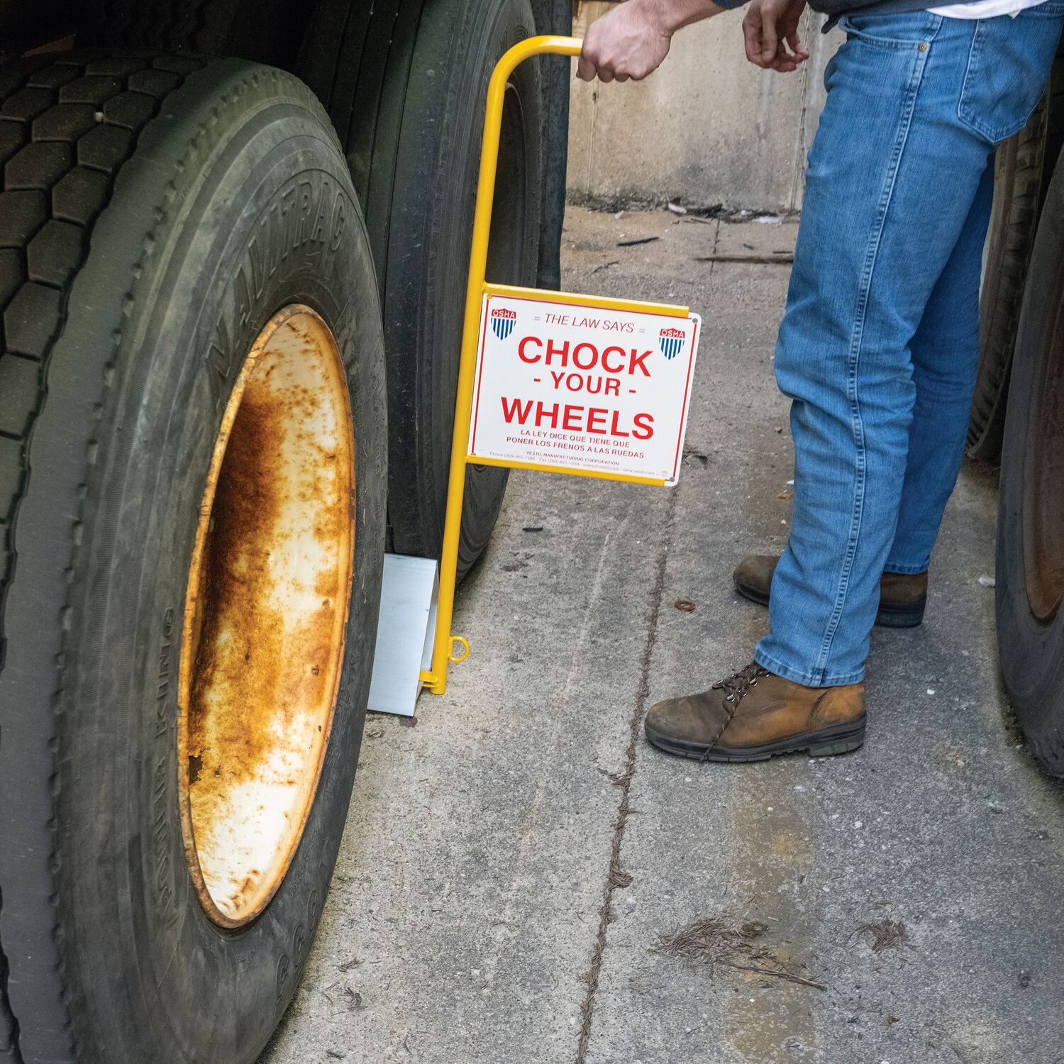 (-FYL) chock is powder coated fluorescent yellow for clear visibility.