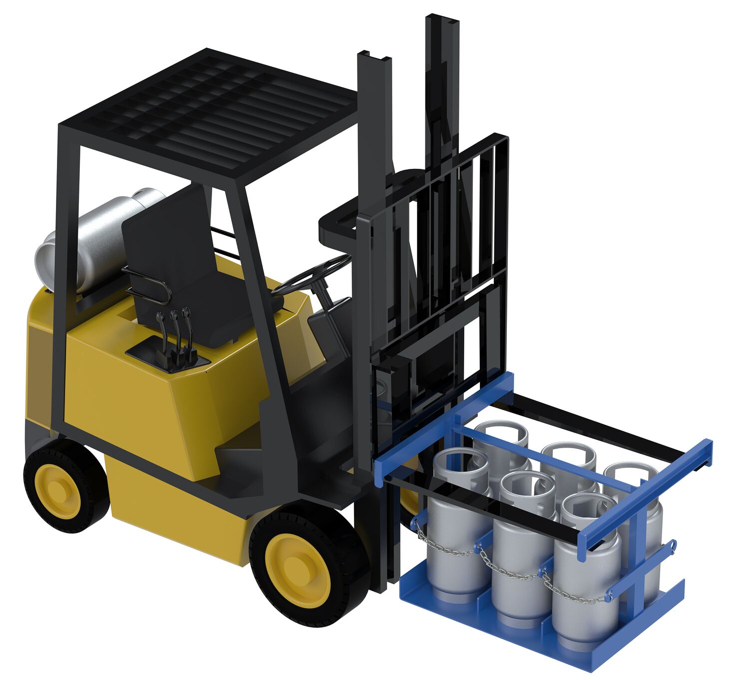 Holds up to six (6) LP tanks up to 12-1/2" diameter each. Made of all steel construction. Safety chains to hold the tanks in place are standard. Portable with fork truck.