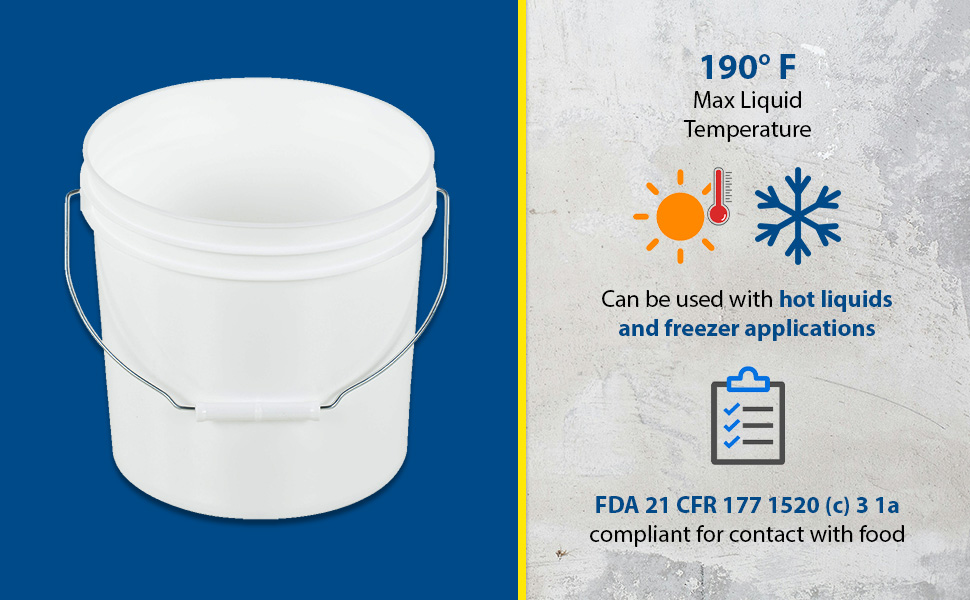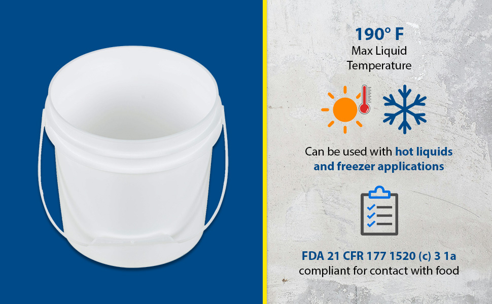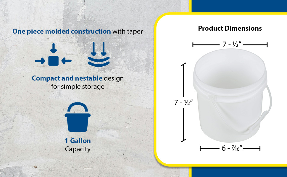 PAIL-1-PWP-180PK PAIL-1-PWP-180PKHigh Density Polyethylene Open Head Pail with Plastic Handle 180 Pack 7-1/2 In. x 7-1/2 In. x 7-1/2 In. 1 Gallon WhiteUniform Capacity (gal.): 1