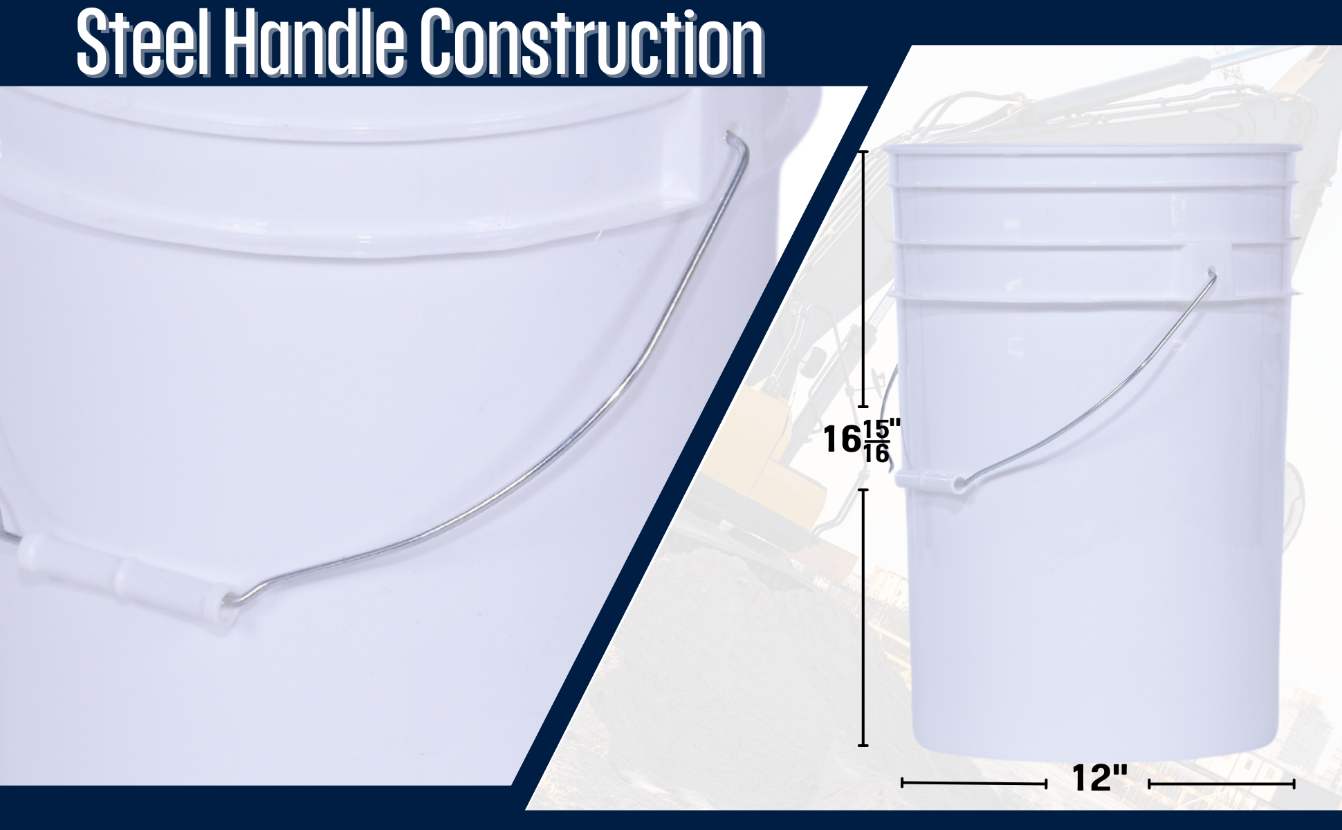 PAIL-54-PWS PAIL-54-PWSHigh Density Polyethylene Open Head Pail with Steel Handle 11-15/16 In. x 11-15/16 In. x 14-1/2 In. 5 Gallon WhiteUniform Capacity (gal.): 5