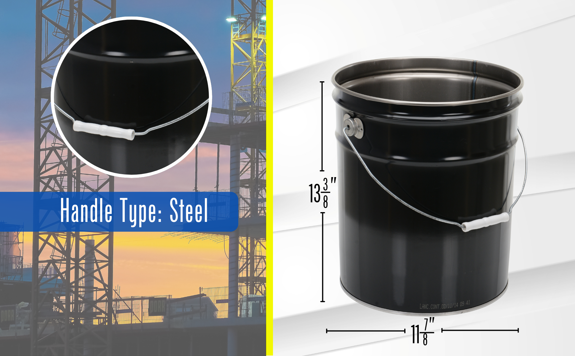 PAIL-STL-RI-UN PAIL-STL-RI-UNSteel UN Rated Pail 11-3/4 In. x 11-3/4 In. x 13-3/8 In. 5 Gallon BlackGauge Between: 24/28