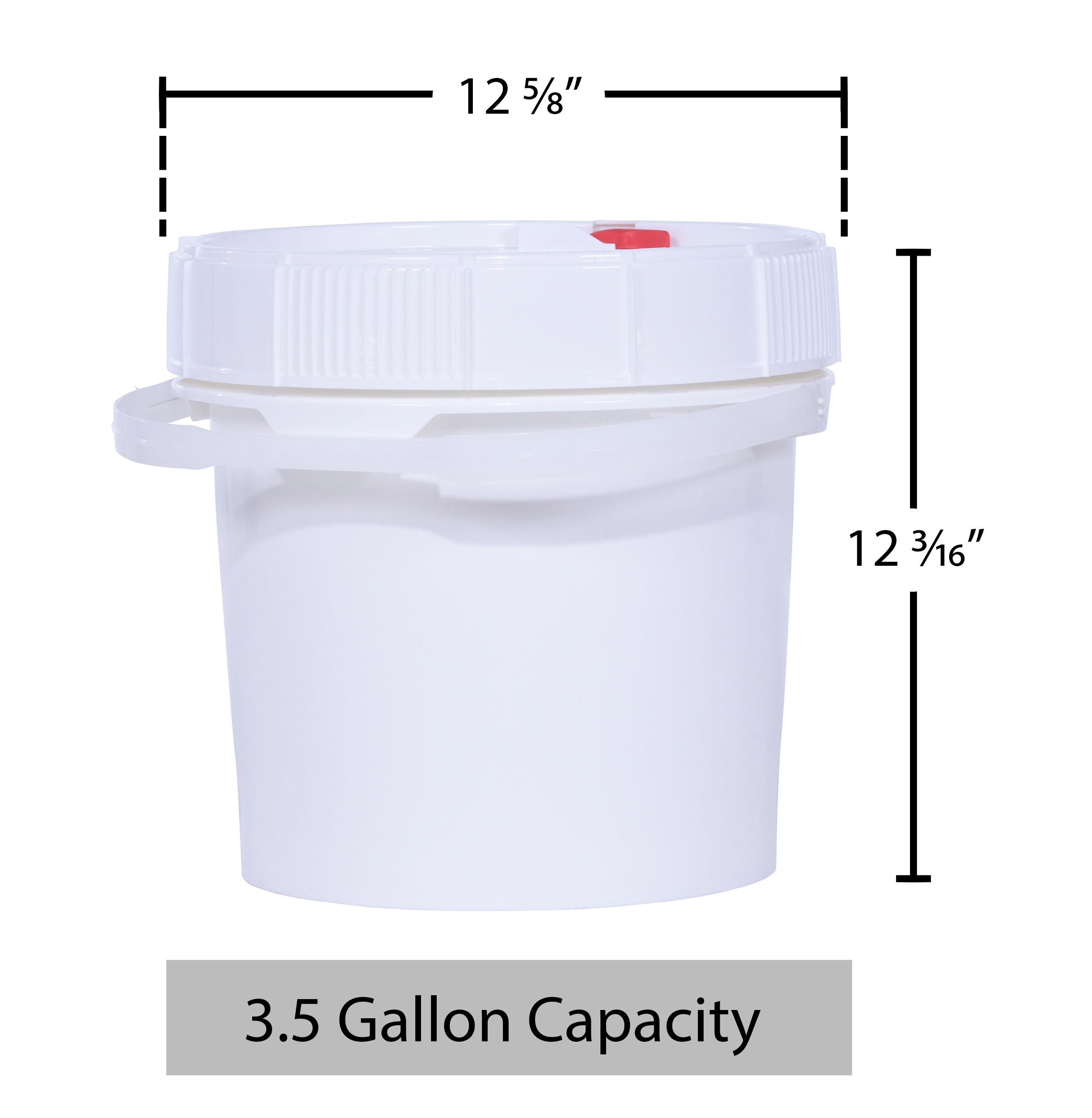 PAIL-SCR-35-W PAIL-SCR-35-WHigh Density Polyethylene Screw Top Pail and Lid 12-5/8 In. x 12-5/8 In. x 12-3/16 In. 3-1/2 Gallon WhiteUniform Capacity (gal.): 3.5